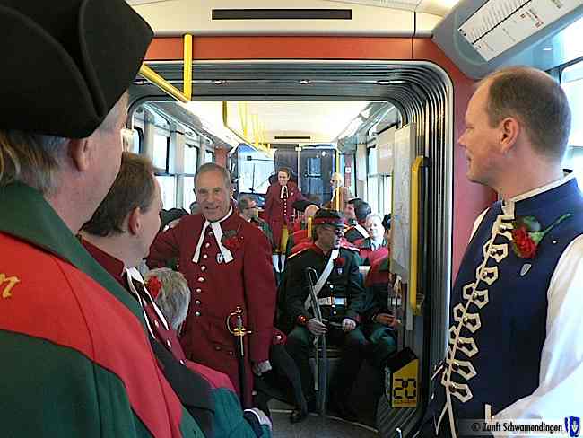 Um 1015 Uhr gilt es, sich von den Schwamendinger Besuchern zu verabschieden und mit dem Tram, einer Cobra, in unser Sechseläuten-Zunftlokal „Hotel Glockenhof“ zu fahren. {member}Dies geschieht unter kundiger Führung von Röbi Müller, unserem VBZ-ler.{/member}